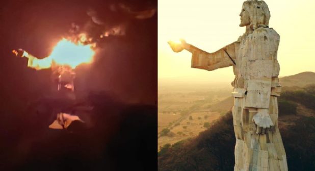 Chiapas.- Un rayo provocó un incendio en el Cristo Pescador, escultura de 33 metros de altura ubicada en La Concordia, Chiapas, la noche del pasado sábado 9 de septiembre.