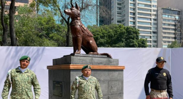 El monumento fue revelado éste jueves por la Secretaría de la Defensa Nacional (Sedena), en el marco del Día Nacional del Binomio Canino, conmemorado en Campo Marte.