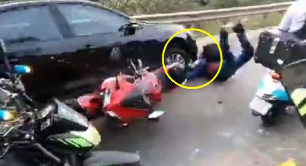 Dicho momento fue registrado en video y difundido ampliamente en las redes sociales, donde se aprecia el momento exacto en que el motociclista fue embestido por un automóvil.