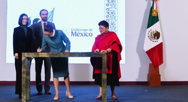 La titular del Ejecutivo federal además firmó el decreto de la reforma constitucional para que el Estado retome control de vías ferroviarias.