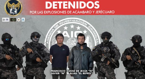 Guanajuato.- Detuvieron a Francisco Javier “N” y a José de Jesús “N,” alias El Refris, quienes son señalados como implicados en las explosiones ocurridas en Acámbaro y Jerécuaro, Guanajuato.
