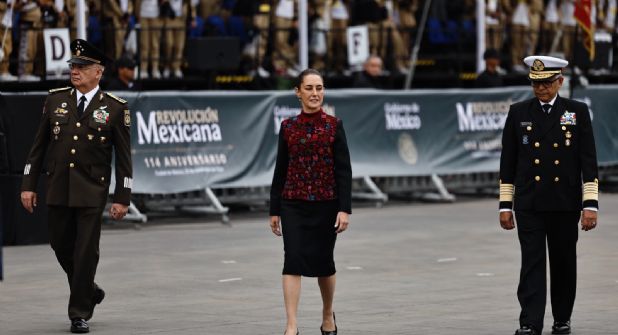 “En esta nueva etapa de nuestra historia, (las Fuerzas Armadas) ponen sus conocimientos, creatividad y profesionalismo para apoyar no solo en la defensa de nuestra patria y el apoyo a las mexicanas y mexicanos, sino también en el desarrollo del país con la construcción de trenes, carreteras, hospitales y puertos”, destacó Sheinbaum.