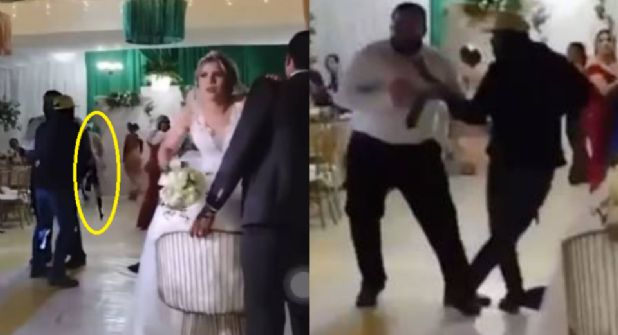 A través de redes sociales se difundió el momento en que la pareja que recién había confirmado su unión, estaba en el centro de la pista de baile, cuando irrumpió un comando armado en el salón de fiesta, provocando pánico y desconcierto entre los invitados.