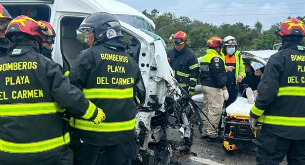 Cancún. - Un fuerte accidente entre una camioneta particular y una camioneta de la empresa eTransfer para el transporte turístico dejó ayer domingo como saldo dos heridos de gravedad y seis personas fallecidas, entre las que se encuentran cinco turistas argentinos.