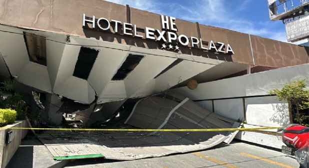 "Atendemos el colapso estructural de un tejaban, en el área de ingreso al estacionamiento del Hotel Expo Plaza, en la Av. López Mateos casi cruce con la Av. Cuauhtémoc, Paseos del Sol, en Zapopan", escribió la cuenta oficial de protección civil y bomberos.