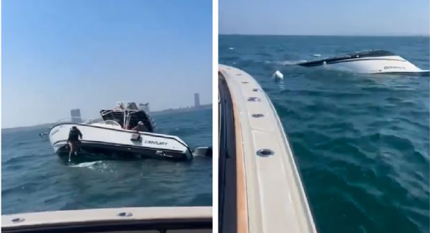 En videos que circulan en redes sociales se aprecia cómo la lancha poco a poco se hunde causando pánico entre los presentes.