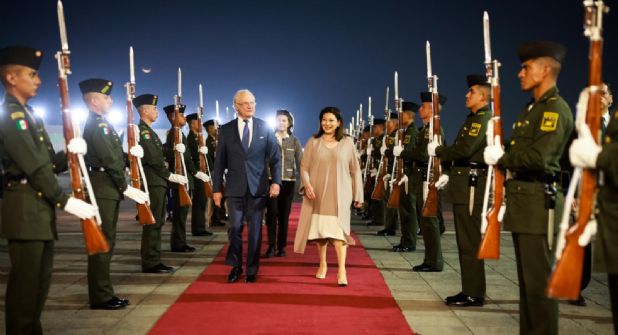 Su estancia en México es calificada como una Visita de Estado, por lo que los reyes fueron recibidos con honores por parte de integrantes del Ejército mexicano, así como por la subsecretaria de Relaciones Exteriores y el embajador de México en Suecia.
