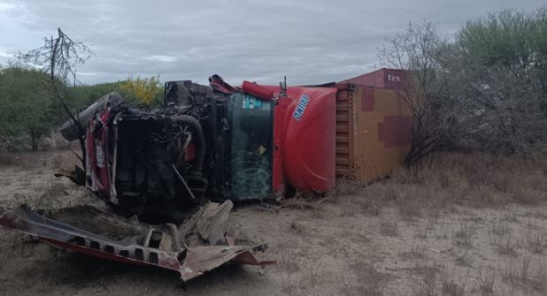 El tractocamión quedó volcado fuera de la cinta asfáltica, sin embargo, el operador no fue encontrado en el área.