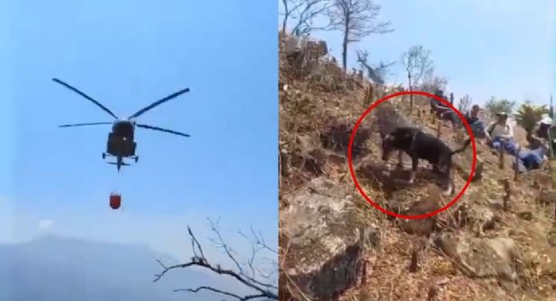 Veracruz.- Un perrito se volvió viral en redes, luego de haber sido 'bañado' por un helicóptero que combatía parte de los incendios forestales, que continúan azotando a Veracruz.