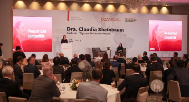 Ciudad de México.- La candidata de la coalición “Sigamos Haciendo Historia”, Claudia Sheinbaum, sostuvo un encuentro con los empresarios agrupados en el “Council of the Américas” (COA), a quienes expuso su Proyecto de Nación sobre el eje de una “Economía Moral y Austeridad Republicana”.