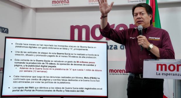 “Llevan meses pautando estos spots en redes sociales y ahora los quieren presentar en la televisión. Lo que están haciendo el PRI y el PAN es reconocer su autoría sobre la guerra sucia. Por lo tanto, ya los spots que quieren que salgan al aire los impugnamos”, advirtió Mario Delgado, dirigente nacional de Morena.