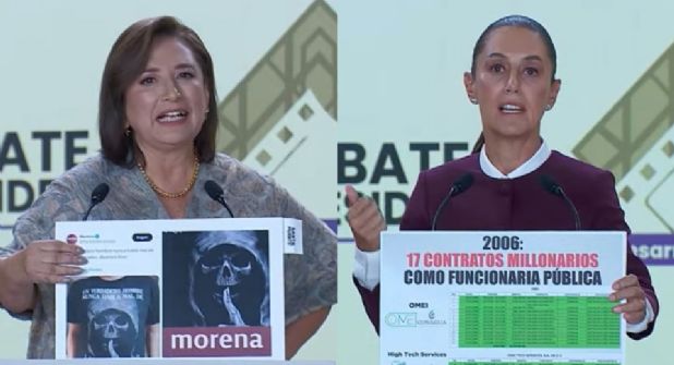 Y así transcurrió la mayor parte del debate, con el asedio constante de la abanderada del PRI-PAN-PRD, a quien le llamaron la atención los moderadores por mostrar carteles cuando no era su turno de hablar, y Sheinbaum amurallada en su ventaja resistiendo los ataques.