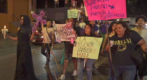 "Son 26 mujeres trans asesinadas este año en México, en Oaxaca no hay, pero hay violencia en contra de las mujeres trans", gritaba una participante que encabezaba la protesta "No les olvidamos".