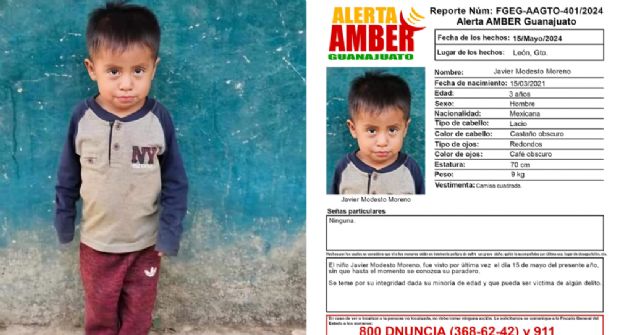 Guanajuato. - Javier Modesto Moreno, de 3 años y quien se encontraba desaparecido desde el pasado 15 de mayo, fue encontrado sin vida en Guanajuato.