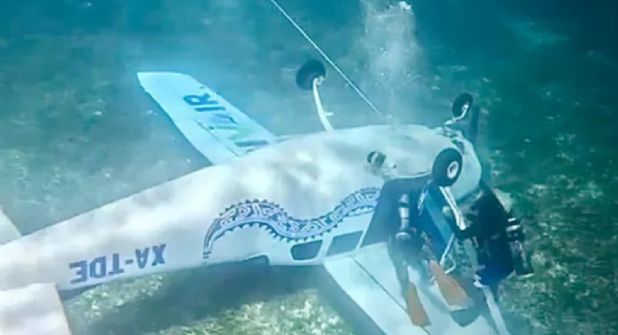 En un video compartido en redes sociales se puede observar a la aeronave completamente "de cabeza" y varios metros bajo el agua.