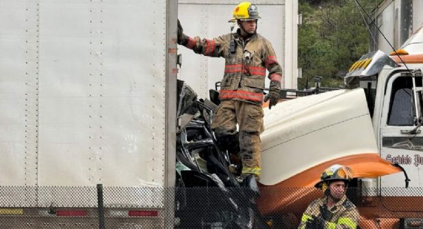 El golpe hizo que la camioneta de las religiosas se fuera de lleno contra otro tráiler y un camión de plataforma, cuyos conductores resultaron ilesos.