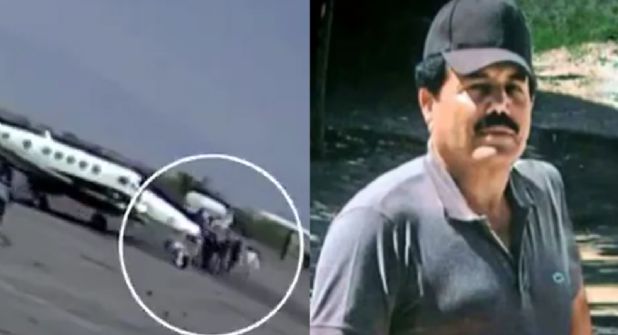 En el material se observa el momento en el que el sinaloense llega a en un avión privado al aeropuerto de Dona Ana County, cerca de El Paso, Texas.