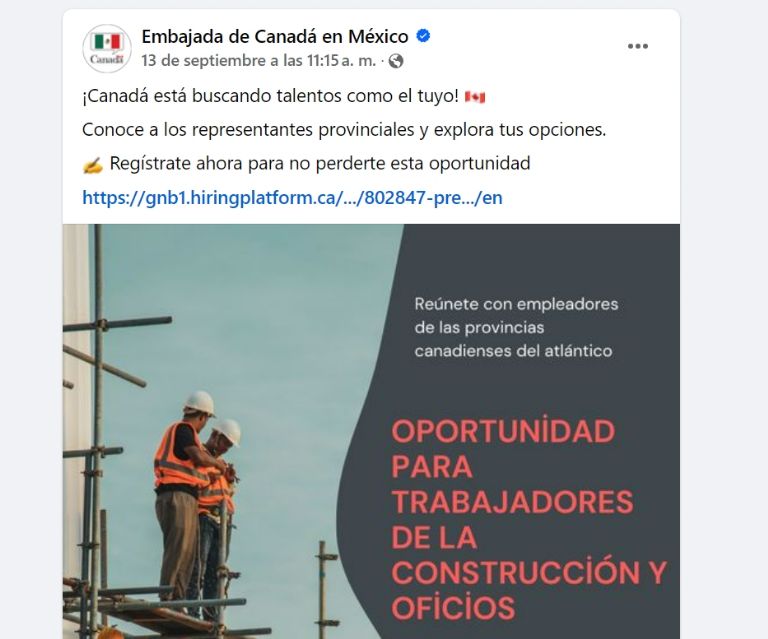 Fue a través de las redes sociales donde la Embajada de Canadá dio a conocer las vacantes disponibles. Entre las localidades en las que se encuentran las oportunidades están Nuevo Brunswick, Terranova y Labrador, Nueva Escocia y la Isla del Príncipe Eduardo.