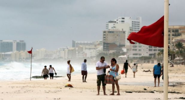 A pesar de que se mantiene bandera roja en todas las playas desde Tulum, Playa del Carmen, la isla de Cozumel, Isla Mujeres y Cancún, muchos turistas aún desafían las olas y las fuertes ráfagas de viento.