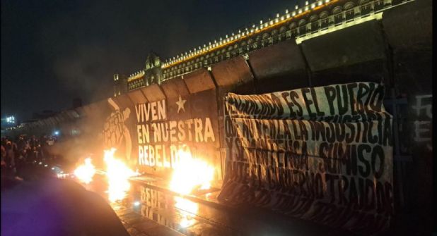 Lo más grave que se suscitó fue que los manifestantes vandalizaron y prendieron fuego la valla que protegía al Zócalo. Además, quemaron la figura de un soldado, mientras los asistentes del hecho hacen un pase de lista de los 43.