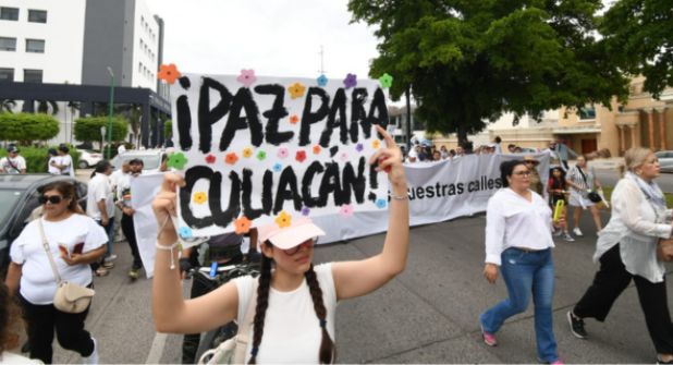 Varios asistentes durante el trayecto de la plaza Cuatro Ríos hasta la Isla de Oraba corearon “culichi que se respeta quiere la paz completa”, entre otras consignas alusivas a la paz.