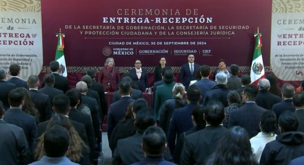 Al filo de las 23:30 hora inició esta ceremonia, en la cual se entregó el liderazgo de la Secretaría de Gobernación, de la Secretaría de Seguridad y Protección Ciudadana, así como la Consejería Jurídica.