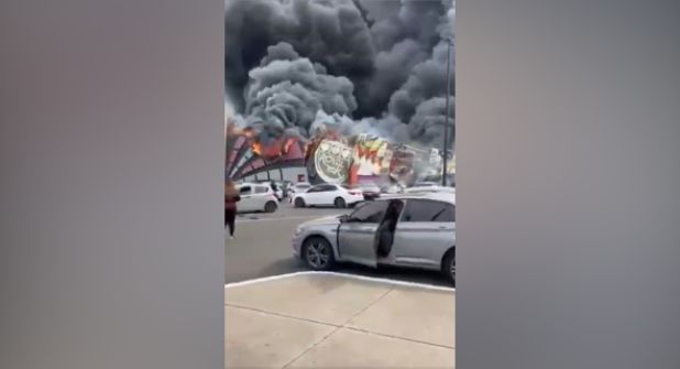 En redes sociales se difundió un video en el que es posible observar el momento en que el casino Royal Yark se consume y se cae a pedazos por el fuego.