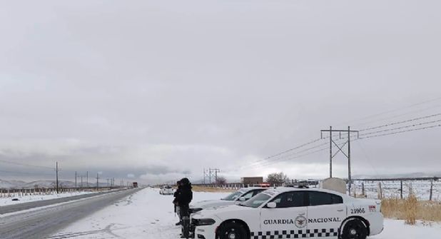 Elementos de la Guardia Nacional, en conjunto con autoridades locales, hacen vigilancias en las carreteras para auxiliar a los automovilistas y responder ante cualquier emergencia que se presente por la intensa nevada que está pasando en el estado.