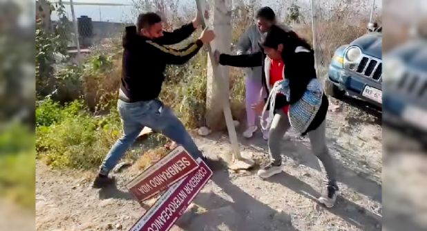 Tultitlán.- Los habitantes de la colonia Cuarta Transformación protagonizaron un enfrentamiento con policías municipales tras retirar placas de nomenclaturas de calles que les fueron impuestas recientemente por el gobierno de Morena.
