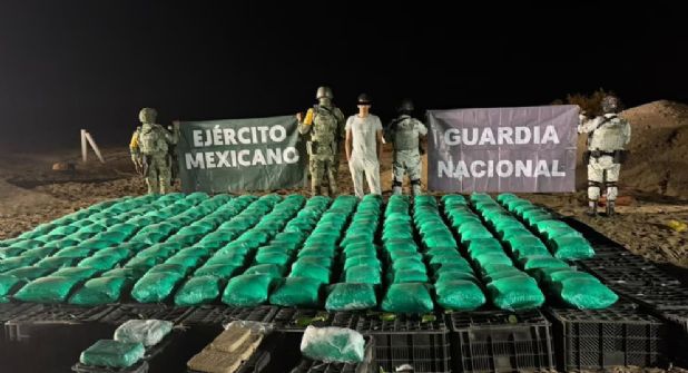 Hermosillo.- Elementos de la Secretaría de la Defensa Nacional (Defensa) y de la Guardia Nacional (GN) localizaron más de una tonelada de metanfetamina, fentanilo y opio oculta en un cargamento de chiles que era transportado a bordo de un tractocamión en el estado de Sonora.
