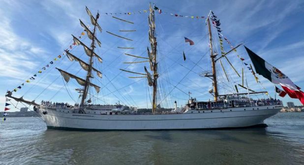 La Secretaría de Marina de México dijo en un comunicado que con el viento a su favor el 'Caballero de los mares', como se le conoce al buque, regresa a su misión de llevar "un mensaje de paz y buena voluntad".