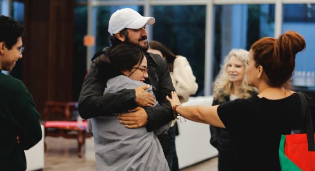 Su estado de salud no presentaba ningún tipo de complicaciones, y al aterrizar alentaron a los presentes a lanzar mensajes de apoyo a Palestina.