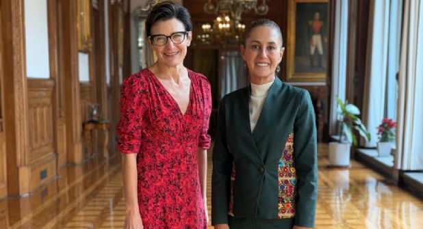 La mandataria compartió una fotografía del encuentro, donde se le aprecia junto a Fraser, en uno de los pasillos de Palacio Nacional, su residencia oficial en la capital mexicana.