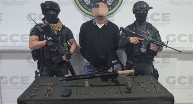 Cd. Valles, SLP.- Tras una balacera en la carretera Valles-Mante, la Guardia Civil de San Luis Potosí confirmó la captura de Marco “N”, alias “El Alacrán”, jefe de plaza de un grupo criminal en la Huasteca Potosina.