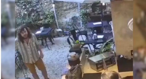 En el video compartido por Ruth, se observa al agresor tirando y rompiendo objetos dentro del establecimiento, al tiempo que bloqueaba su salida de la barra para impedirle huir.