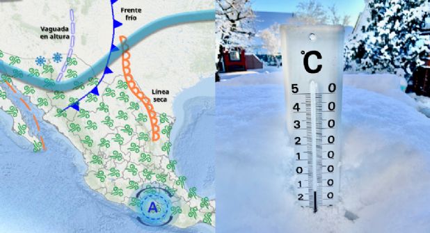 “Originará descenso de temperatura en el noroeste de México; chubascos y lluvias puntuales fuertes en Baja California y Sonora, con la posible caída de nieve o aguanieve en zonas serranas de dichas entidades; así como lluvias e intervalos de chubascos en Chihuahua y Baja California Sur”, publicó en su página web.