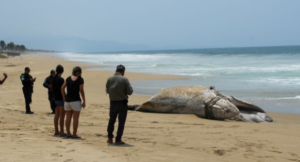 Acapulco.- Una ballena jorobada murió varada en la playa de Coyuca de Benítez, en Guerrero, al sur de México, con una cuerda amarrada y parte de una red de pesca en la cola, por lo que ambientalistas denunciaron este miércoles que fue culpa de pescadores irresponsables.