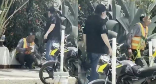 En el video, cuya duración es de 45 segundos, es posible observar el momento en que un hombre de apariencia robusta llega y se dirige hacia el trabajador que estaba sentado comiendo. Se observa cuando el turista le hace señas para que se mueva del lugar, mientras que el trabajador opta por levantarse y alejarse del sitio.