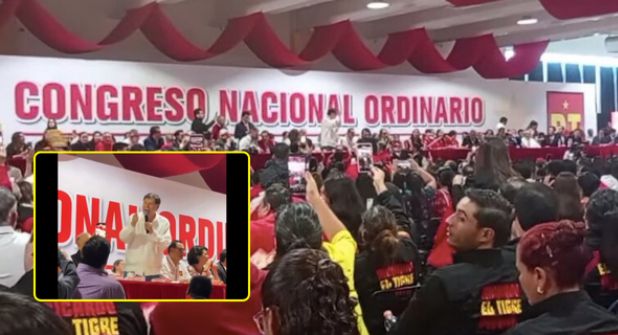 Ciudad de México.- El presidente de la Cámara de Senadores, Gerardo Fernández Noroña, fue abucheado por integrantes del Partido del Trabajo (PT) durante el Congreso Nacional que tuvo lugar este sábado 26 de abril.
