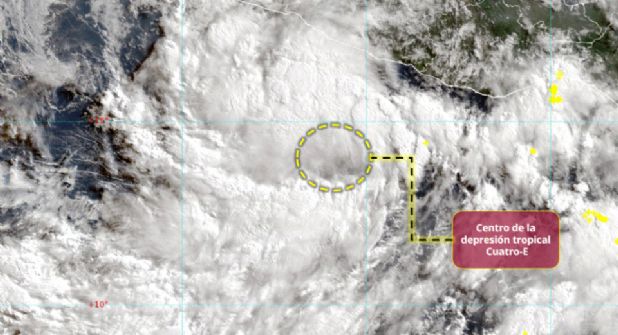 Ciudad de México. – El potencial tropical originado en el Pacífico mexicano evolucionó esta mañana de viernes a depresión tropical Cuatro-E.