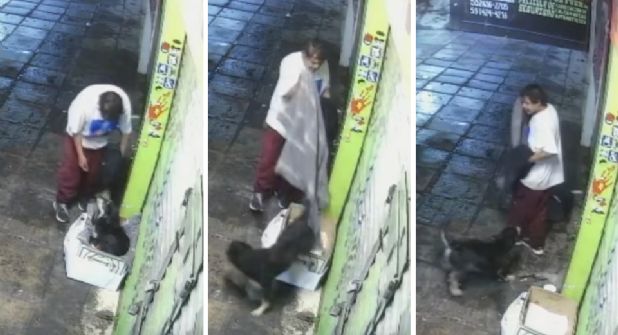 Este hecho quedó captado en video por una cámara de seguridad ubicada en la zona, que además del atraco, mostró cómo en la ciudad había presencia de lluvia, lo que significa que fue un doble golpe contra el perro que ese 17 de junio tuvo que dormir sin su frazada.