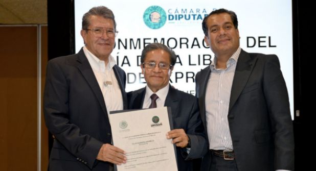 La distinción fue entregada por Ricardo Monreal, presidente de la Junta de Coordinación Política (JUCOPO), y por Sergio Gutiérrez Luna, titular de la Mesa Directiva de la Cámara de Diputados.