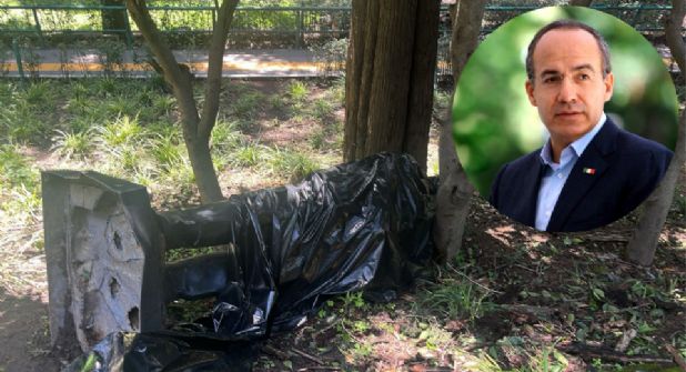 Ciudad de México. - La estatua del expresidente de México, Felipe Calderón, ubicada en la Calzada de los Presidentes del Complejo Cultural Los Pinos, en Ciudad de México, fue derribada tras la caída de un árbol, provocada por las intensas lluvias registradas en la región.