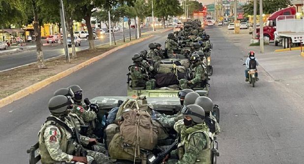 Culiacán.- Ante los altos niveles de violencia que persisten en el estado de Sinaloa llegaron un total de 300 elementos del Ejército Mexicano a la ciudad de Culiacán y se sumarán a la realización de operativos y patrullajes junto a la Guardia Nacional, corporaciones estatales y municipales.