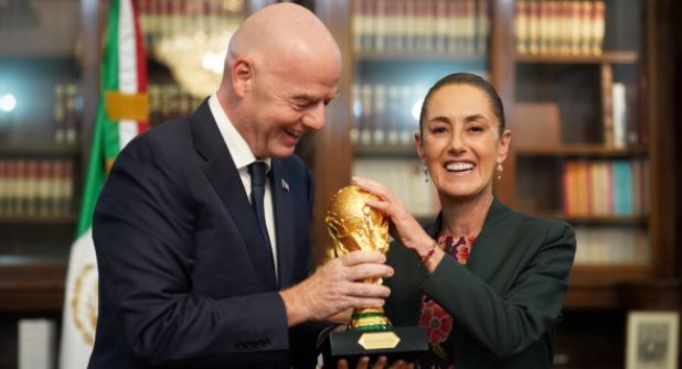 Durante el encuentro, Sheinbaum tocó el codiciado trofeo de la justa mundialista y también recibió simbólicamente su boleto para asistir al partido inaugural del mundial.