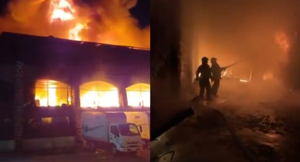 A través de redes sociales comenzaron a difundirse diversos videos en los que se observa el intenso fuego al interior del predio, así como una espesa nube de humo negro que se elevaba sobre la zona.