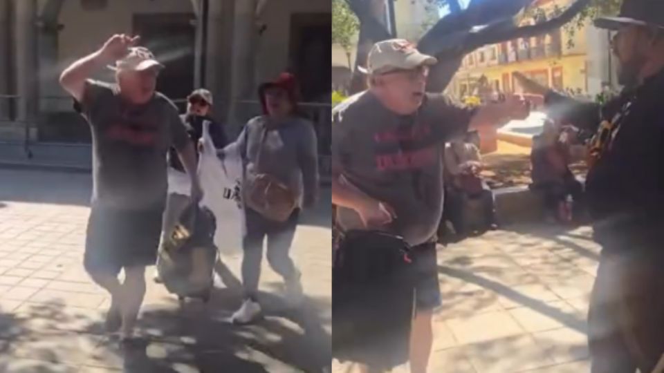 La confrontación entre los manifestantes y el turista llamó rápidamente la atención de quienes transitaban por el zócalo de Oaxaca.