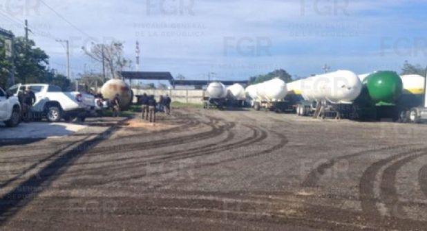En el tercer cateo realizado en un predio, se aseguraron ocho semirremolques tipo tanque, dos tractocamiones, dos camiones, una camioneta, dos remolques nodriza y dos tanques fijos de almacenamiento.