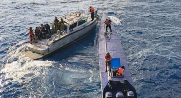 Manzanillo. – Una Embarcación de Bajo Perfil (LPV por sus siglas en inglés) o semisumergible tripulado por tres personas y aproximadamente 179 bultos con un peso total estimado de 4 toneladas con presunta cocaína, fue decomisado a unos 463 kilómetros al sur suroeste del puerto de Manzanillo, Colima.