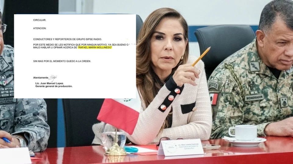Quintana Roo.- Señalamientos en redes sociales colocaron en el centro de la polémica a la gobernadora de Quintana Roo, Mara Lezama, luego de que comenzara a circular un comunicado interno atribuido a Grupo SIPSE Radio, en el que se instruye a conductores y reporteros evitar cualquier mención al titular de la Agencia Nacional de Aduanas, Rafael Marín Mollinedo.